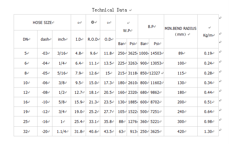 Use standards :EN853 SAE100R1AT